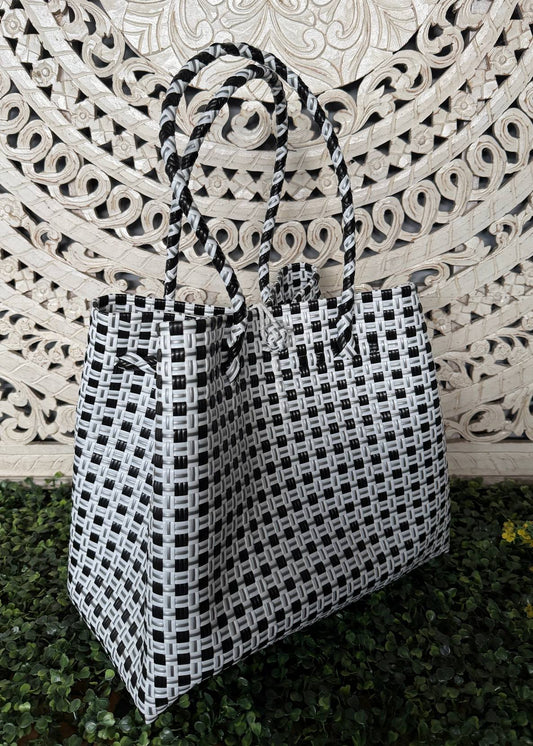 CANASTA BAGUS PLASTIC LENI JUMBO BLANCO/NEGRO TU