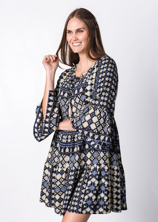 VESTIDO CORTO GITANO NEGRO/ACERO TU