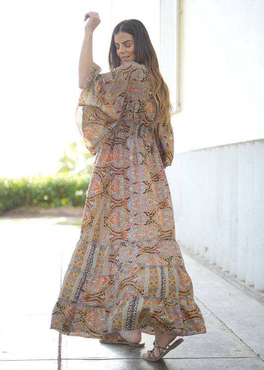 VESTIDO LARGO RODAS TOSCA/CORAL TU