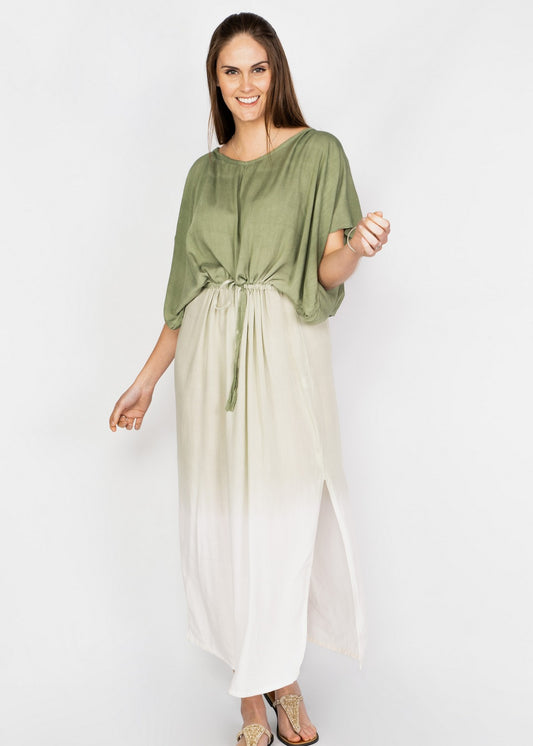 VESTIDO LARGO AIMAR CREMA/VERDE