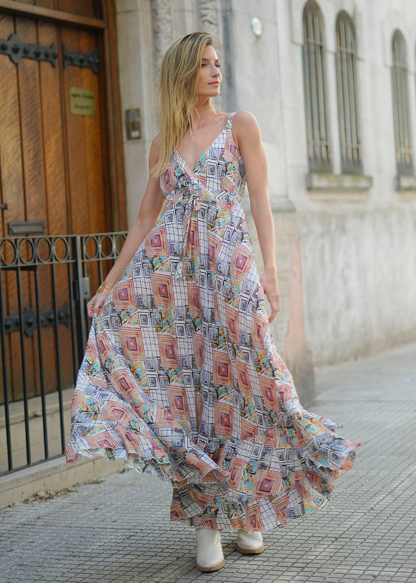 VESTIDO LARGO DALIM CREMA/GRIS TU