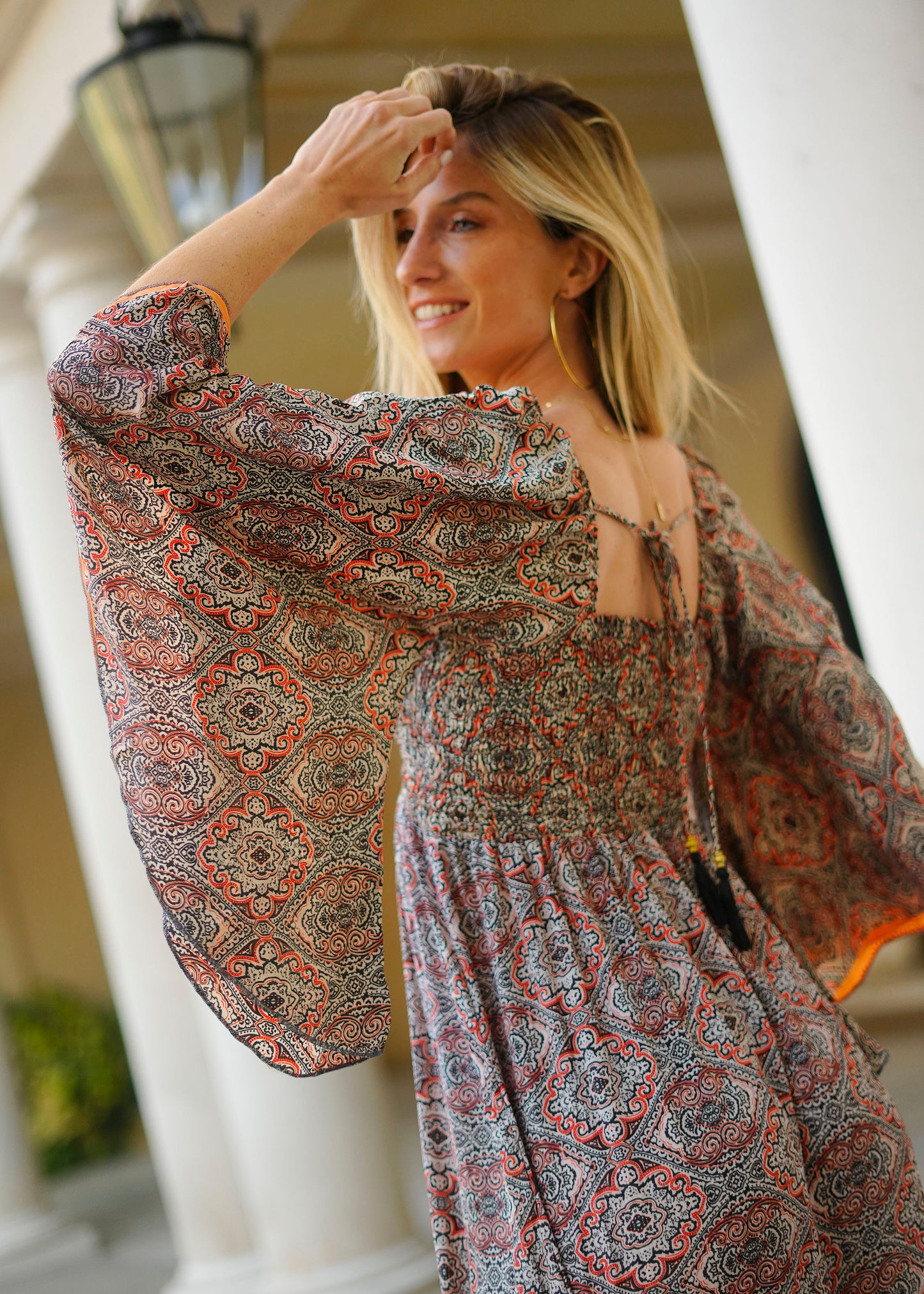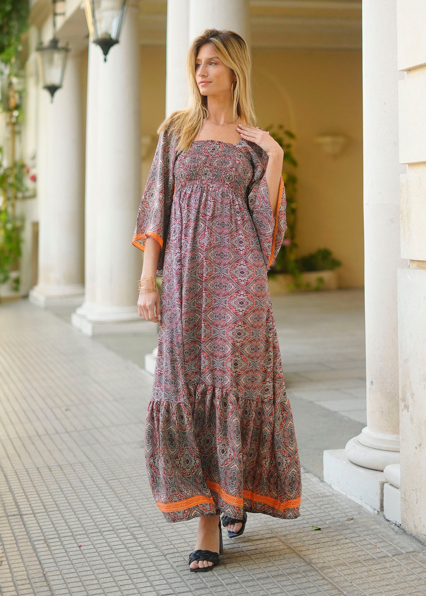 VESTIDO LARGO GAIAL CREMA/NARANJA TU