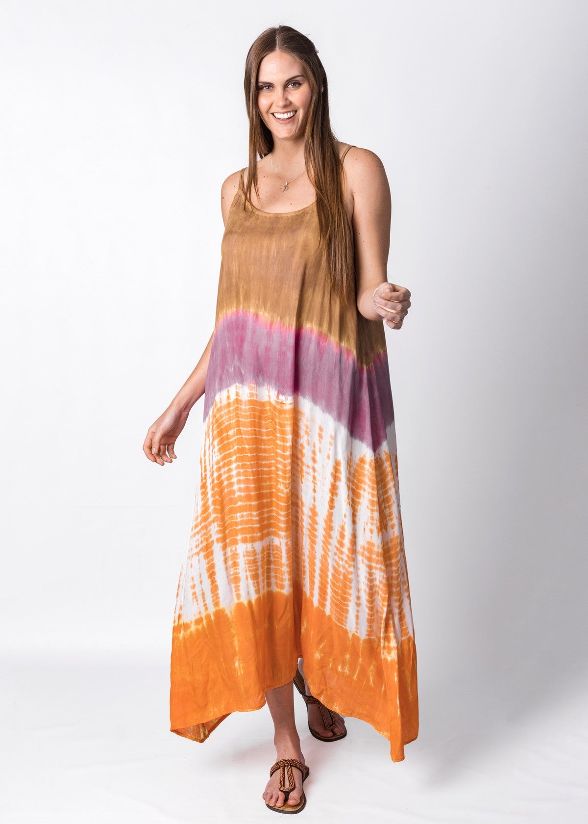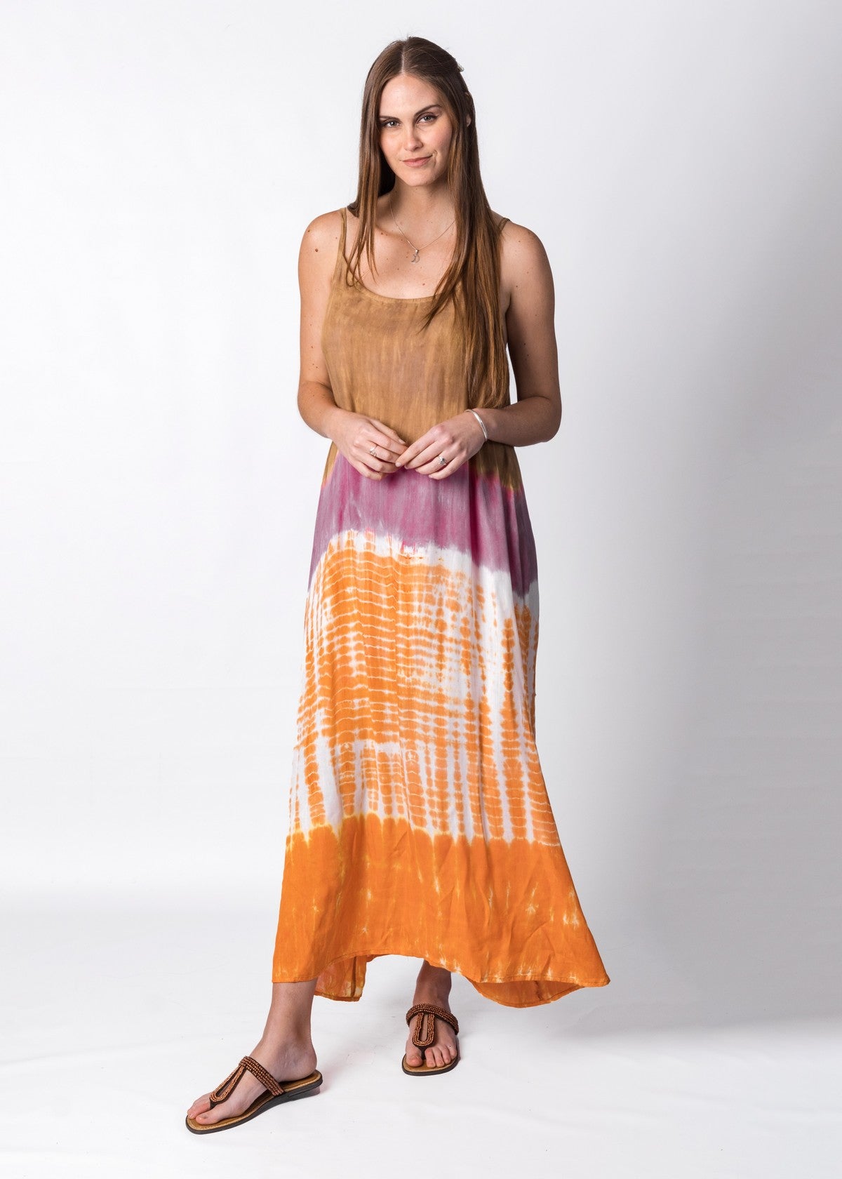 VESTIDO LARGO RODAS CAFE/FUCSIA TU